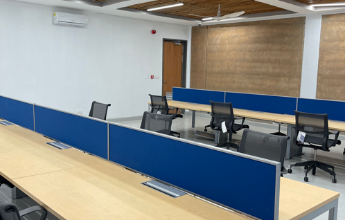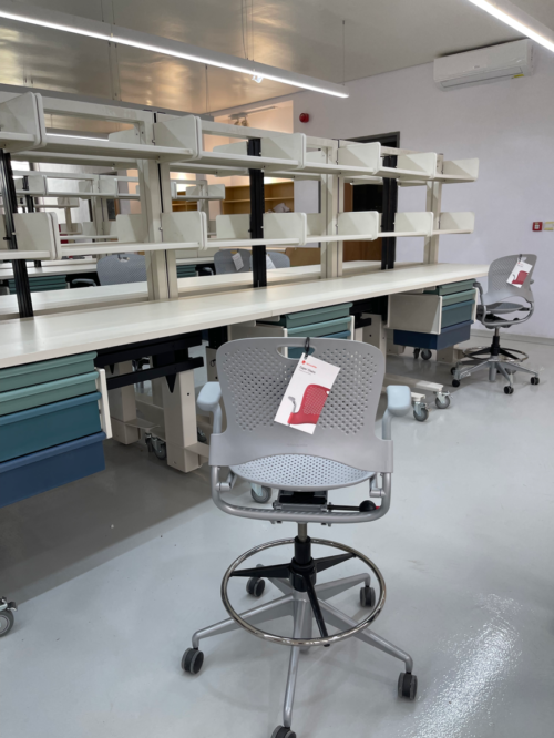 Nermschoff Co/struc system is a system of interchangeable structural elements, surfaces, storage and special components that fit to furnish the African Center of Excellence for Genomics labs and testing environments.